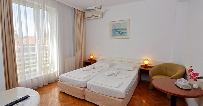 Apartamentele sunt formate din dormitor cu pat matrimonial/2 paturi twin si living cu o canapea extensibila pentru o persoana, cu usa intre ele, 1 baie, TV si AC intr-o singura camera.