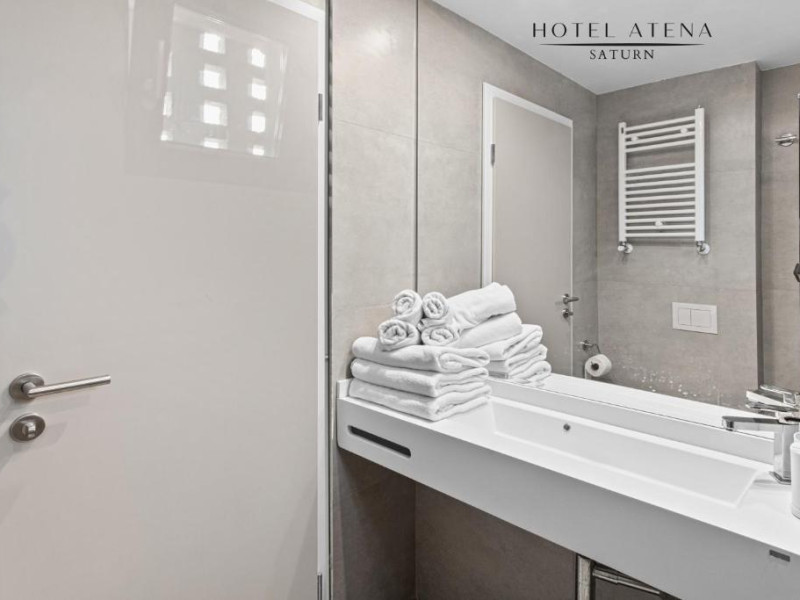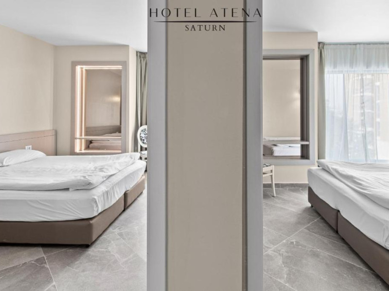 Hotel Atena*** se află la 2 minute de mers pe jos de Plaja Paradiso și la 400 m de Plaja Saturn. Aeroportul Internațional Mihail Kogălniceanu se află la 65 km.