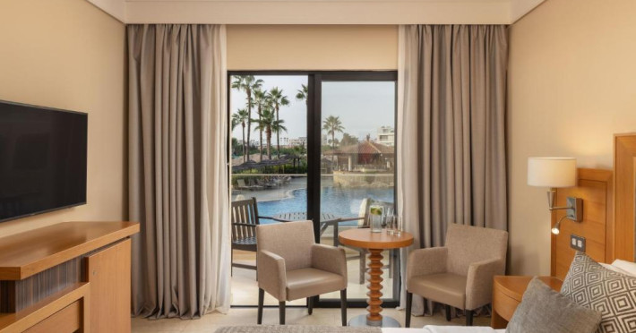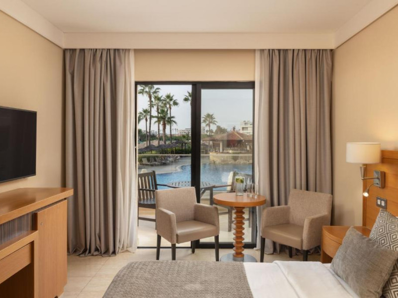Atlantica Golden Beach Hotel - Adults Only are un restaurant, un bar, un lounge comun și o grădină in orașul Paphos. Acest hotel de 4 stele oferă acces gratuit la internet WiFi, o zonă de plajă privată și servicii de concierge. Hotelul are o piscină in aer liber, un centru de fitness, divertisment de seară și o recepție deschisă nonstop.