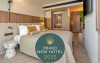 Camerele luminoase și confortabile sunt dotate cu aer condiționat, TV cu ecran plat, minibar și balcon privat. Majoritatea oferă vedere spre mare sau spre grădina hotelului.