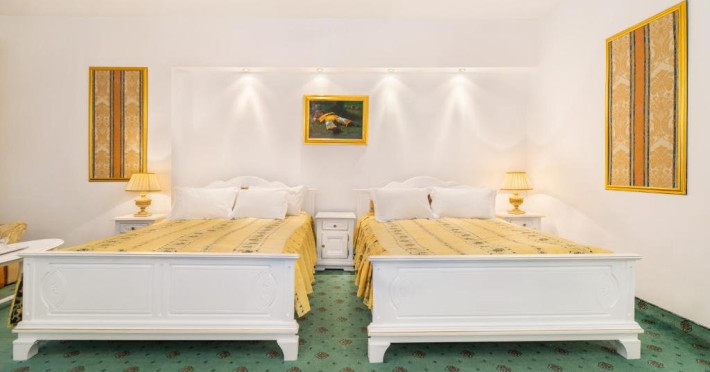 Camera Executive ofera confort intr-un spatiu de 100 mp cu doua paturi matrimoniale si balcon.
