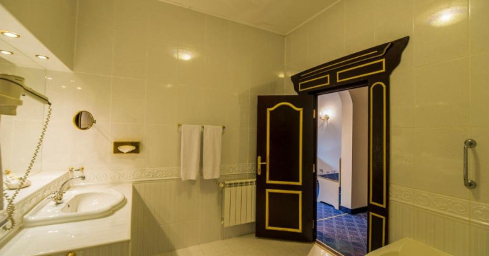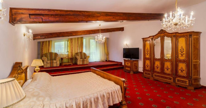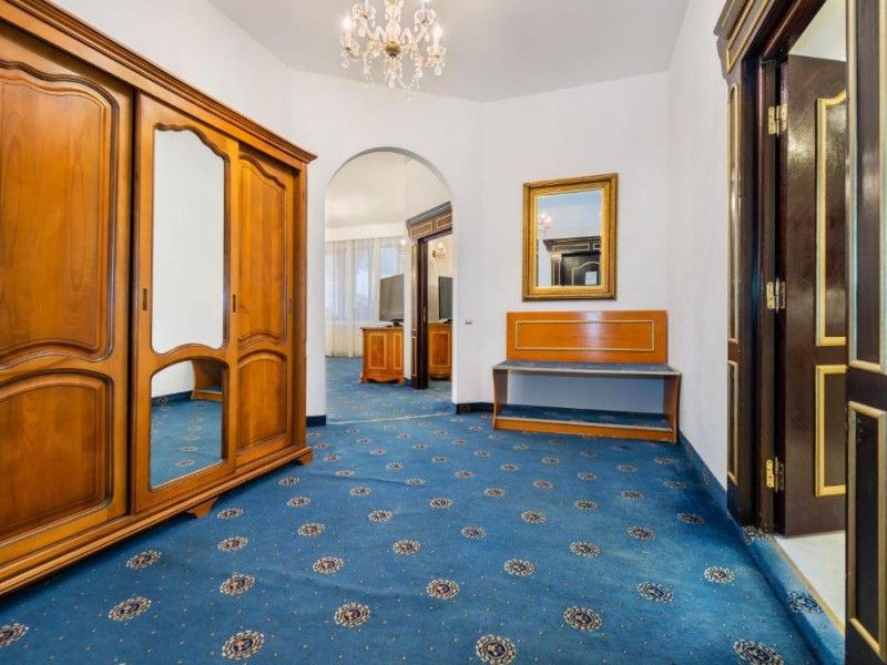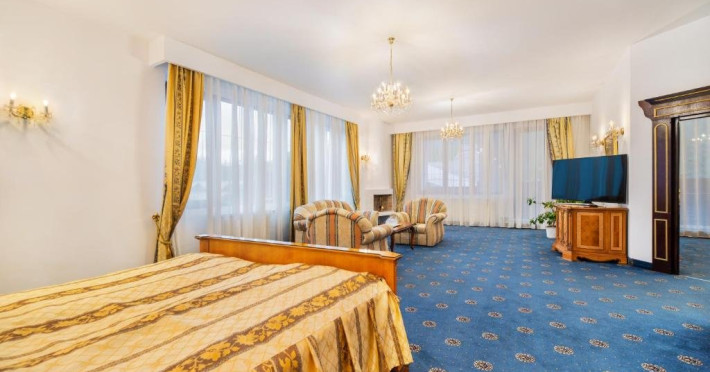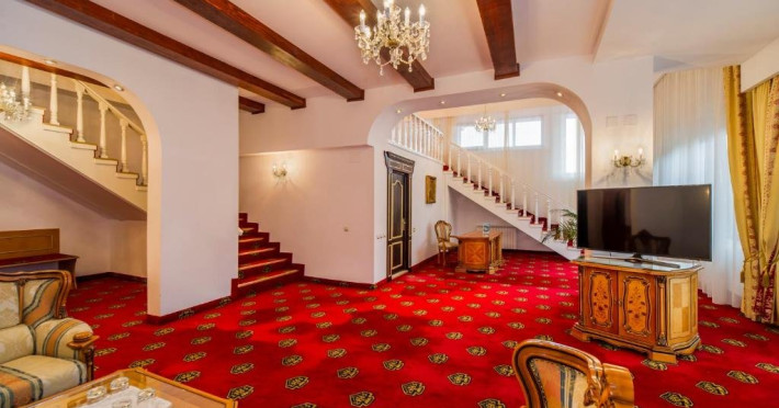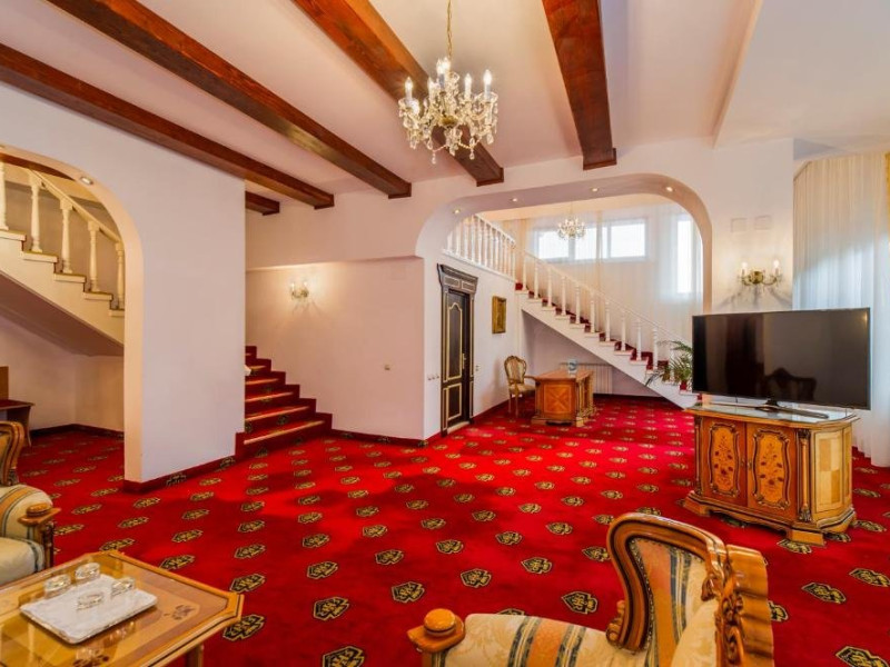 Suita Deluxe cu suprafata de 200 mp ofera 2 dormitoare cu pat matrimonial si living cu canapea extensibila, balcon. Spatiul este deservit de doua bai, dintre care una cu sauna umeda.