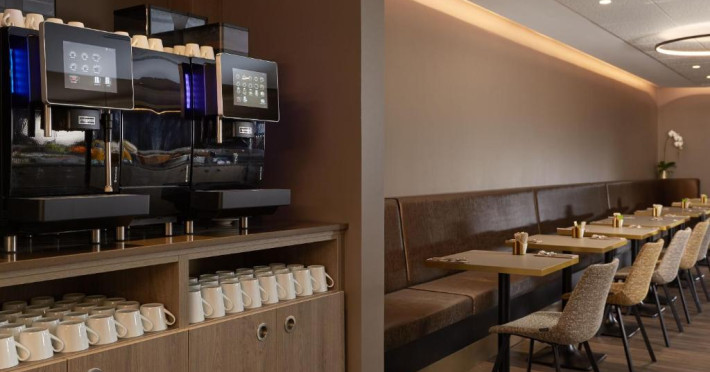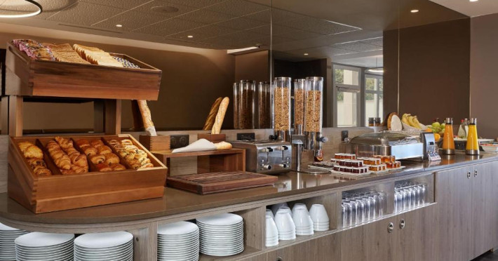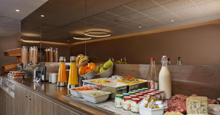 In fiecare dimineață este servit un mic dejun tip bufet, care include paine proaspătă, produse de patiserie și specialități de casă. Sunt disponibile produse organice.