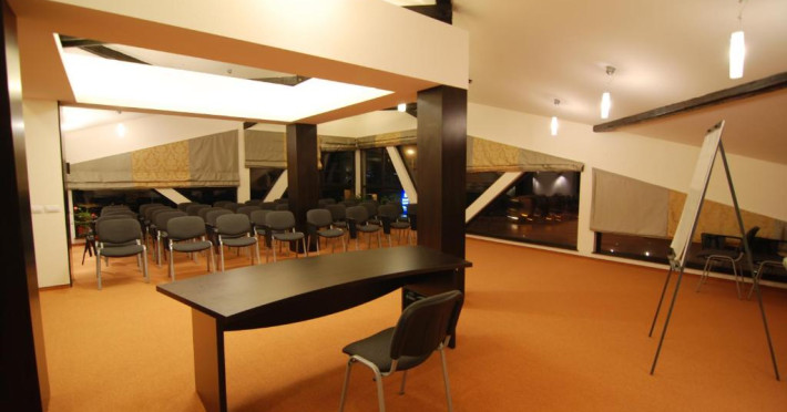 La etajul 1 există o sală de conferințe, cu vedere frumoasă. Aceasta are capacitatea de cel mult 80 de persoane și este echipată cu dotări ultramoderne.