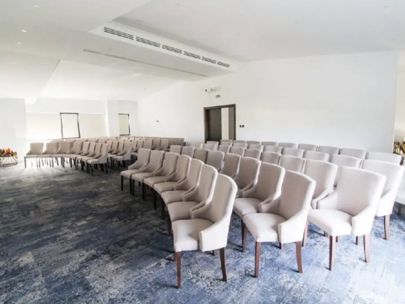 Sala de conferinte Vogue Venue dispune de pana la 100 de locuri si de dotari ultramoderne: AC, videoproiector, sistem audio, flipchart, consumabile, lumina naturala, toalete proprii, terasa pentru fumatori. La cerere se pot asigura contra cost si urmatoarele servicii: coffee break, pranz, brunch, cina.