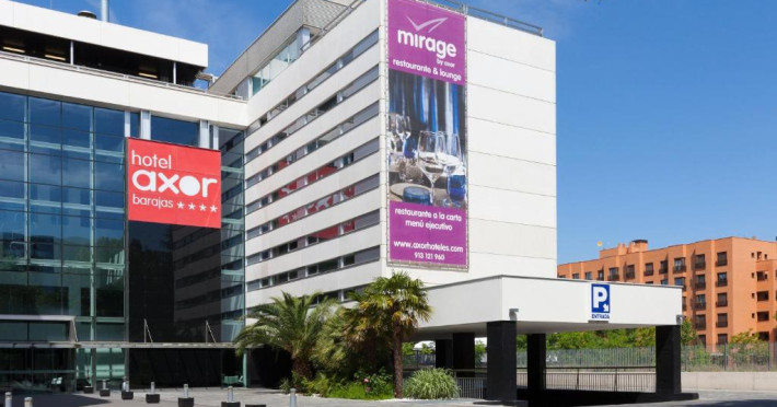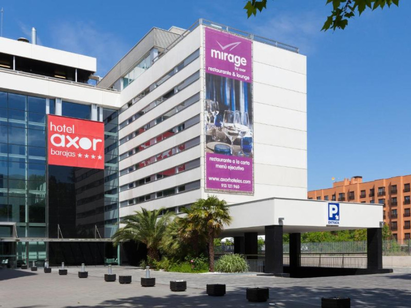 Hotelul Axor Barajas are un bar și restaurantul Mirage, care servește bucătărie mediteraneană. Este disponibil și room service. Hotelul are o grădină și lounge-uri tematice, inclusiv o sală Wii și o zonă de relaxare.