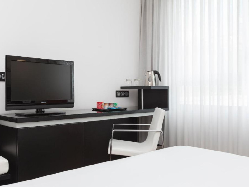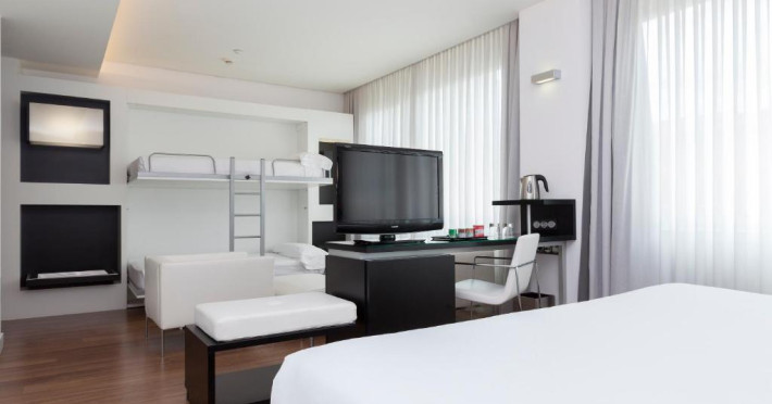 Toate camerele de la Axor Barajas sunt dotate cu aer condiționat, un televizor inteligent de 43 de inci cu Chromecast incorporat și podele din lemn. Camerele spațioase și luminoase sunt, de asemenea, izolate fonic și incălzite. Sunt disponibile un seif, un minibar și un birou.