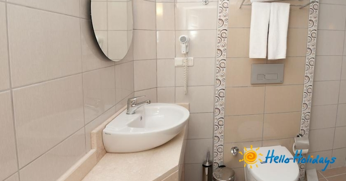 Camerele sunt dotate cu: aer conditionat, baie proprie cu cabina de dus, minibar, telefon cu linie directa, TV receptie satelit, uscator de par, telefon in baie.