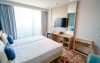 Pentru familiile cu doi copii, acest tip de camera este alegerea perfecta. Patul cu saltea de 1.80 m, precum si canapeaua pentru un copil asigura locul confortabil pentru fiecare membru al familiei. Designul nou, culorile calde si lenjeriile de bumbac asigura confortul intregii familii si va pregateste pentru o noua zi de aventura.