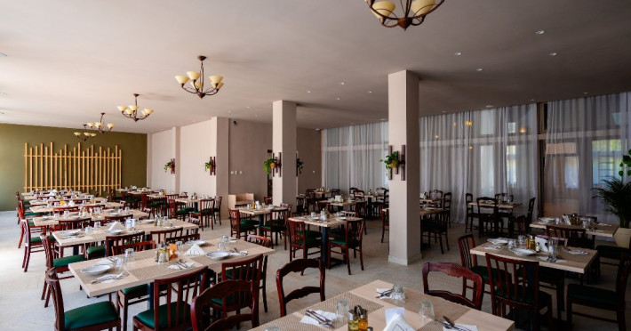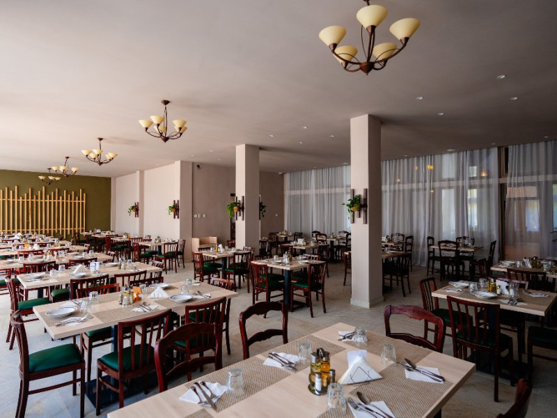 Restaurantul dispune de 200 locuri, ceea ce il face un loc ideal pentru evenimente corporate si private, aducand impreuna peisajele spectaculoase ale zonei cu experienta culinara deosebita pentru a crea evenimentul perfect. Micul dejun se serveste incepand cu a doua zi a sejurului. In ziua check-out-ului, micul dejun va fi singura masa inclusa.Intervale de servire mese: Mic dejun: 08:00 - 10:00 Pranz:13:00 - 15:00 Cina: 18:00 - 21:00, In cadrul demipensiunii sau a pensiunii complete intrarea se face cu cina si iesirea se face cu mic dejun.