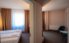 Camera family - 4 camere family pot acomoda max. 2 adulti si 2 copii pana la 14 ani. Camera Family ofera un spatiu generos, creat special pentru confortul si relaxarea intregii familii. Aceasta camera este ideala pentru doi adulti si un copil depana la 14 ani, asigurand toate facilitatile necesare pentru o sedere placuta si confortabila. Dotari camera: balcon, wi-fi, telefon, baie cu cabina de dus, papuci si halat, minifrigider, tv.