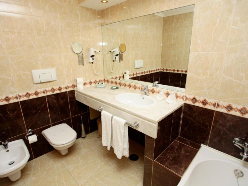 Camerele Hotelului Baia Grande au aer, decor in culori neutre și balcon. Toate camerele sunt dotate cu TV cu ecran plat cu canale prin satelit și minibar. Unele unități de cazare oferă vedere frumoasă.
