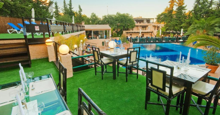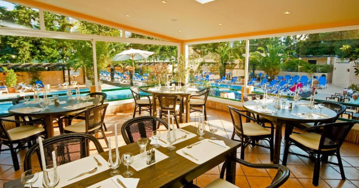 Hotelul are un restaurant deschis din aprilie pană in septembrie, unde este servit micul dejun. Snack barul de langă piscină servește micul dejun și gustări, din aprilie pană in septembrie.
