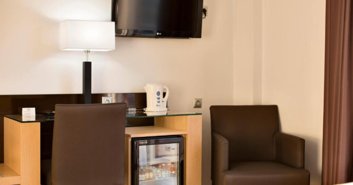 Facilitati cameră dublă sau twin: pat matrimonial sau twin, baie proprie, uscator de par,cadă sau dus, aer conditionat, seif (contra cost), telefon, TV cu ecran plat, canale prin satelit, garderobă sau dulap, birou, balcon