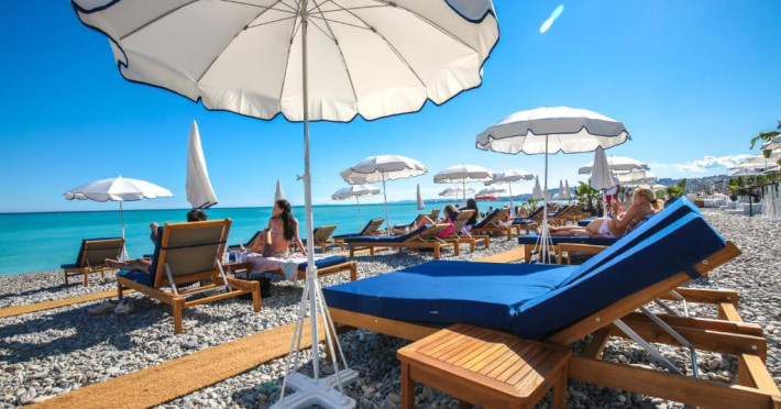 Plaja privată a hotelului, Plage du Beau Rivage, oferă sezlonguri, un restaurant si divertisment de seară. Activitătile disponibile pe plajă includ schi nautic si wakeboarding. Restaurantul de pe plajă serveste băuturi si gustări pe terasa cu vedere la Marea Mediterană.