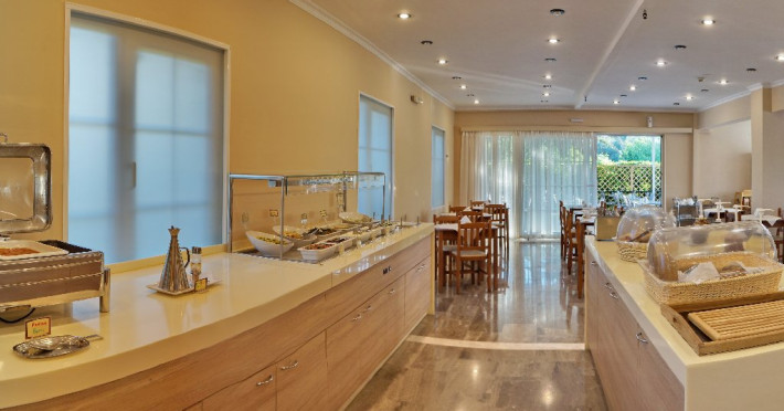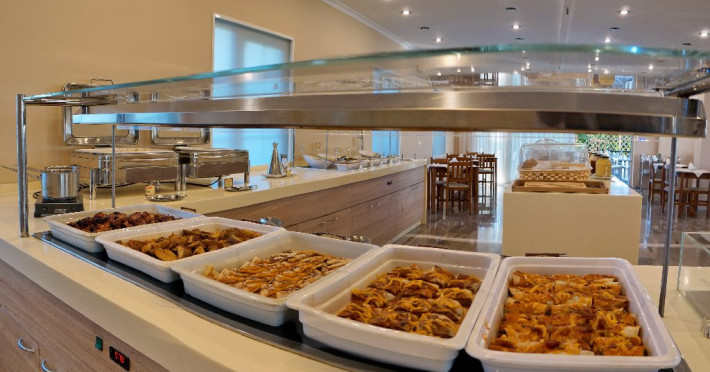 Hotelul dispune de restaurant si bar, unde poti savura preparate traditionale grecesti sau bauturi racoritoare.