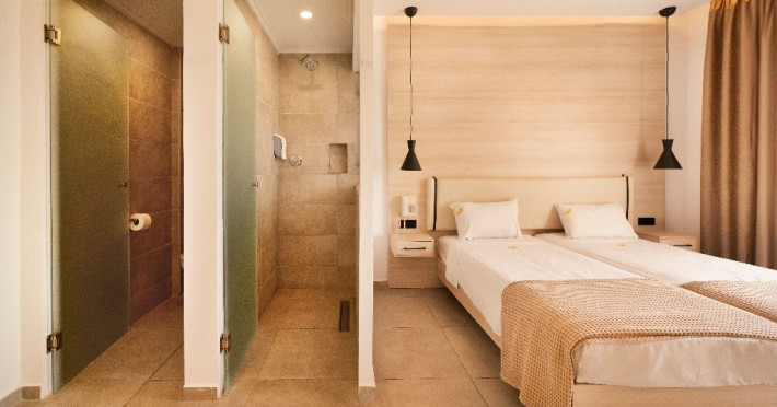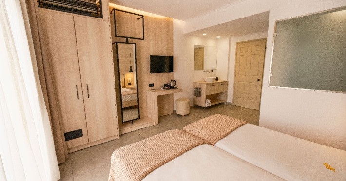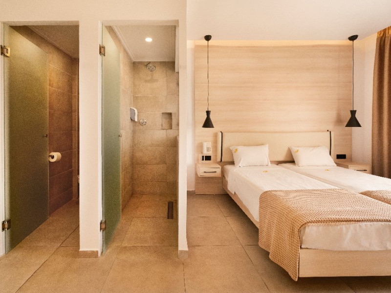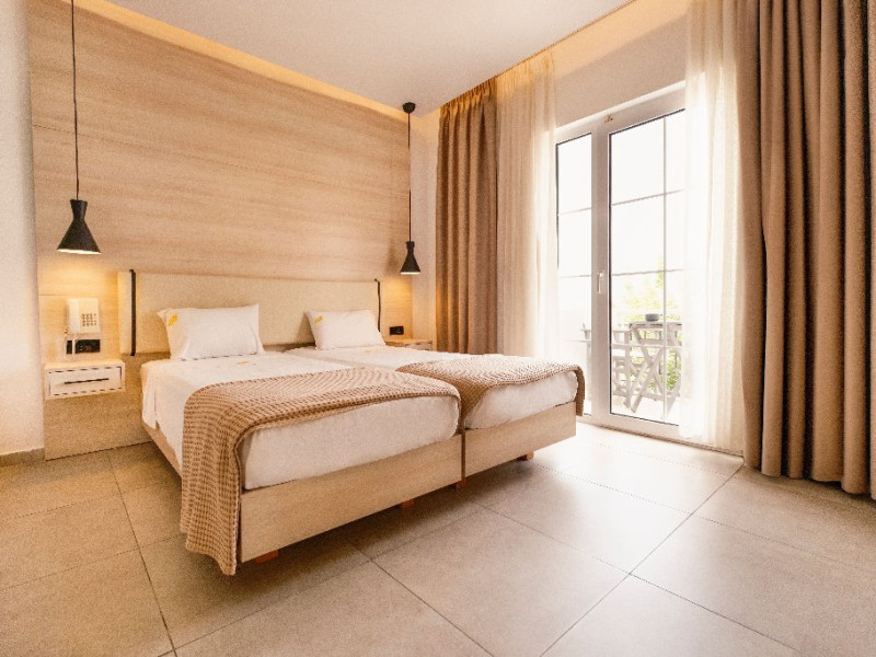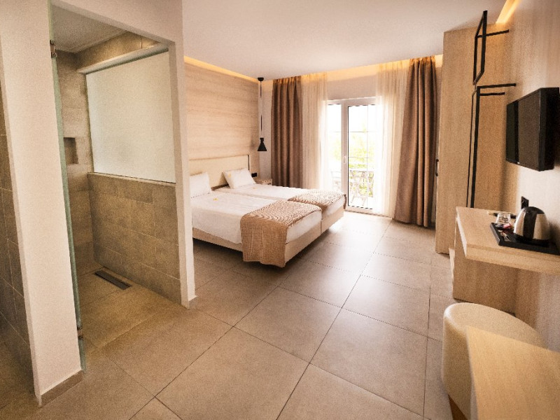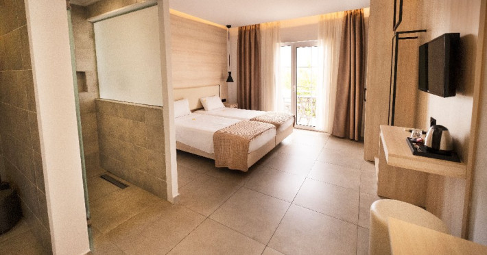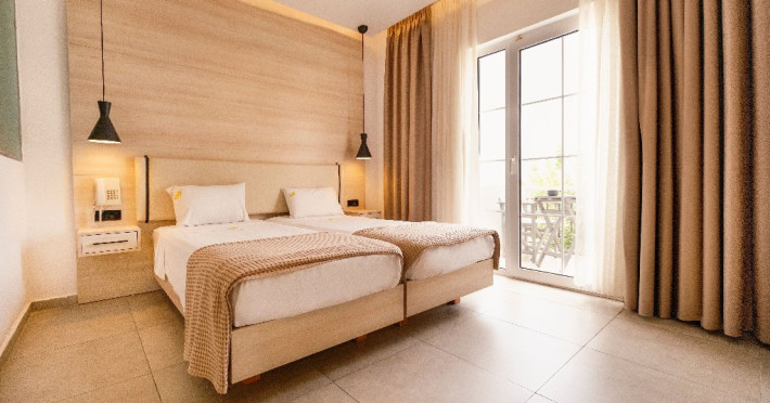 Dotari camere: camerele la Hotel Bella Vista sunt duble cu vedere la mare sau la gradina si ca facilitati au baie cu dus, uscator de par, aer conditionat, mini frigider, balcon sau terasa.