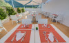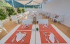 The hotel Hotel Bellevue Lagomonte is located approximately 1 km from a public sandy/rocky/stone beach. The nearest bars and restaurants can be found at a distance of around 100 m. The old town is around 4,6 km away. You can find a range of shops and a supermarket directly on your doorstep. There is a 24h shuttle service between the hotel and the airport (for a fee) 24h a day. Nearby there is a disco and a waterpark which offer entertainment in high season. The beach is Pets are allowed here. Here, there are cushions and sun umbrellas available. Near the beach there is a promenade where you can go for a stroll. The air-conditioned, GPS-verified hotel has a 24h reception (check-in is possible around the clock), a lobby bar, Wi-Fi, internet access, 2 lifts, a supermarket and other shops, a boutique, cash machine, showers and changing rooms, a first aid kit as well as a TV lounge with satellite TV. In the outdoor area of the property you will find a garden as well as a supervised pool, where sun loungers and sun umbrellas are available for free. There are also 2 separate and integrated children's pools with a non-swimming area. Furthermore, outside you can find a sun terrace. You can store your valuables in the safe, and your luggage in the hotel`s storage room. In addition, the hotel Hotel Bellevue Lagomonte is video-monitored 24h a day. For your entertainment, the hotel offers a disco. For the young hotel guests there is a playground. For very young guests, kid`s chairs and cots can also be provided. For the smallest children prams can be rented in the hotel. There is also a laundry service as well as an ironing service available at an additional cost to customers. Ironing equipment can also be rented at the hotel for a fee. For your comfort there is a concierge service. If necessary, you can contact the medical centre at any time. The energy supply is 220 Volts. If you want to explore the holiday region, you can use the car and motorbike rental service close to the hotel. At the reception, tickets are offered for excursions in the area. For guests on their honeymoon, the hotel has special offers such as a romantically-decorated room or sparkling wine. In your hotel, a lot of focus is placed on sustainability. This includes the hotel`s own recycling bins, the provision of soap, shampoo and lotion dispensers, organic food and ecological meals, a central room air-conditioning and environmentally-friendly cleaning. That is why the hotel Hotel Bellevue Lagomonte was also awarded a sustainability certificate. The hotel requires that all guests pay a deposit upon arrival. American Express, Euro/Master Card and Visa are accepted as means of payment. Credit cards are not accepted at the hotel. Due to its barrier-free facilities , such as a sliding door in the entrance area, an automatic hotel door, a hotel door that can be opened manually, barrier-free entrances, wheelchair accessible rooms, a wheelchair accessible lift, a handrail in the elevator and wheelchair-accessible bathrooms, the hotel is also suitable for wheelchair users. Catering As catering services the hotel offers all-inclusive. Breakfast is offered continental or from the buffet. Enjoy your lunch from the buffet or as a set meal with salads and desserts. Dinner is also served as a buffet with starters, salads and desserts. As part of the all-inclusive service, coffee and tea (24h) are available around the clock and at no extra charge. For the meals, there are a buffet restaurant with terrace (calorie-reduced, gluten-free and vegetarian dishes) and several bars, the cafeteria as well as the pool bar. The drinks menu of the hotel includes water, soft drinks, coffee and tea, beer and wine. Distances- Nearest town: approximately at 5 km