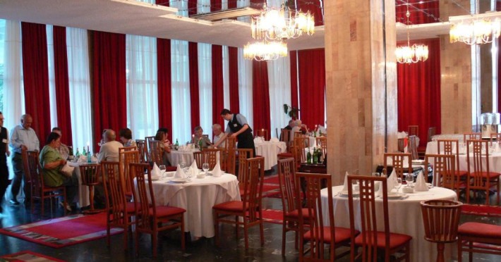 Hotelul Belvedere are un restaurant cu 3 săli de mese, care serveste preparate din bucătăria internatională. Oaspetii pot lua masa si pe terasele acoperite sau neacoperite ale hotelului. Micul dejun tip bufet oferă o selectie bogată, inclusiv produse de patiserie preparate in bucătăria hotelului.