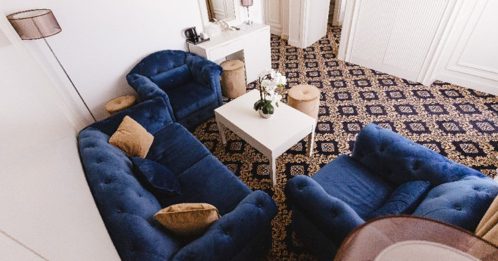 Apartamentele Queen sunt situate la etaj si sunt formate din 2 spatii (living cu canapea extensibila si dormitor cu pat matrimonial 180x200 cm) care comunica intre ele printr-o usa, 2 bai, balcon. Toate apartamentele sunt dotate si cu tavite de bun venit (fierbator cu cesti cafea sau ceai).