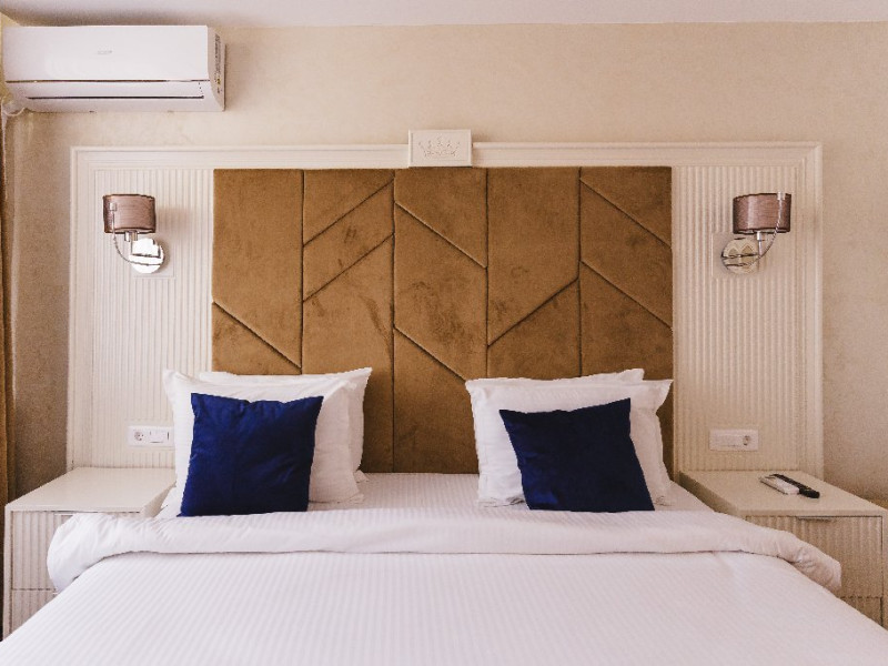 Camerele duble superioare (cu balcon) - situate la etaj, au balcon, iar patul matrimonial are 160 cm/200 cm. Se poate adauga pat suplimentar.
