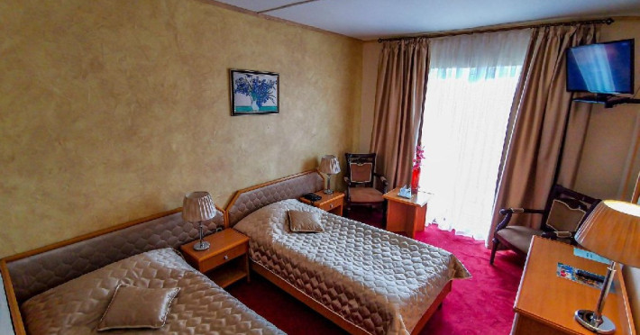 Camerele sunt dotate cu TV color, cablu,minibar, baie cu dus, internet, telefon.Camerele cu vedere panoramica au o suprafata de 14 mp ofera un pat matrimonial sau doar paturi twin.