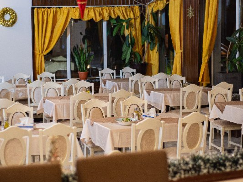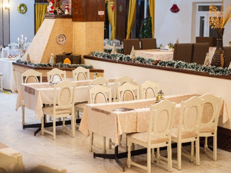 Restaurantul renovat si modernizat dispune de un salon clasic, cu un cadru elegant avand o capacitate maxima de 200 locuri si de un salon modern cu o capacitate maxima de 80 locuri unde se pot organiza petreceri private.