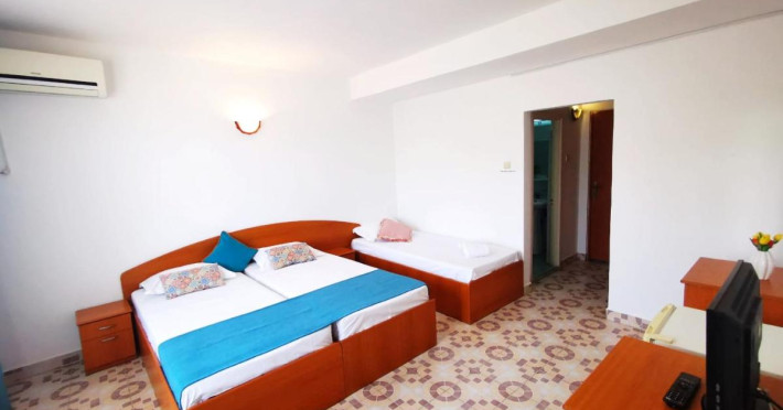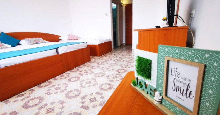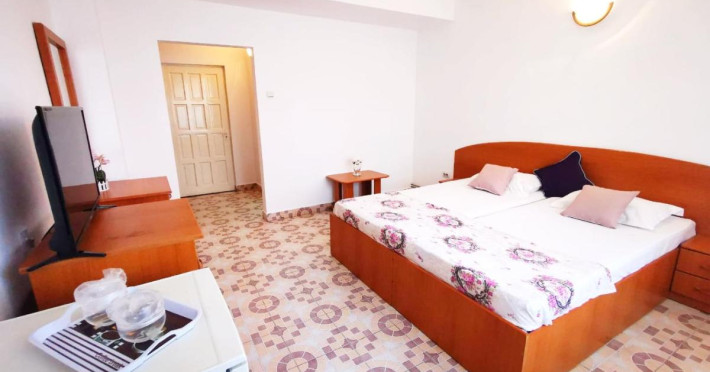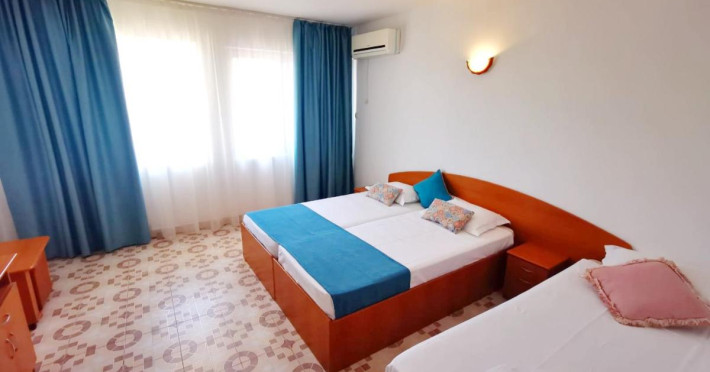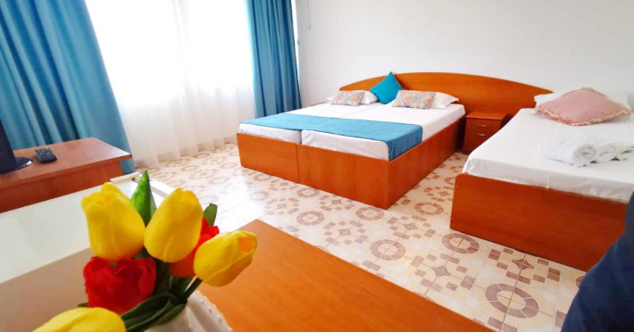 Hotel Berlin**, cu o capacitate de 65 camere , situat in centrul statiunii Eforie Nord, chiar pe bulevardul principal, la o distanta de 400m fata de plaja, pune la dispozitie o gama de servicii turistice corespunzatoare categoriei de 2* al hotelului. Hotel Berlin are o capacitate de 65 camere duble mobilate si utilate la conditii de 2*+: - 38 camere duble cu pat matrimonial - 20 camere triple cu un pat duble si un pat simplu - 5 camere de 4 locuri: un pat matrimonial si 2 paturi de o persoana. - 2 camere de 5 locuri cu panorama supberba asupra orasului, de unde se poate observa si marea, fiind situate la ultimul etaj, respectiv etajul 5. Camerele au in dotare: - televizor - frigider - baie proprie cu apa calda non stop - aer conditionat in majoritatea camerelor. Majoritatea camerelor avand si balcon. Camerele au Aer conditionat. Hotel Berlin ofera cea mai buna mancare din Eforie Nord, avand cea mai buna Autoservire Berlin, unde clientii revin an de an pentru cele mai bune preparate. Hotelul Berlin nu are in dotare lift. Hotel Berlin este situat in centrul statiunii Eforie Nord, langa statia de taxiuri, ofera cazare la aproximativ 300 metri de faleza. Baruri, restaurante si o piata a agricultorilor se gasesc la cativa pasi de Hotelul Berlin.Cea mai apropiata statie de autobuz este la 10 de metri, iar Gara Eforie Nord se afla la 500 de metri. Orasul Constanta se afla la mai putin de 17 km. * Tarifele afisate NU includ taxa de statiune care variaza intre 1-5% din prima noapte de cazare si se plateste la receptie - Se accepta si animale de companie contra unei taxe de 30 lei/zi.