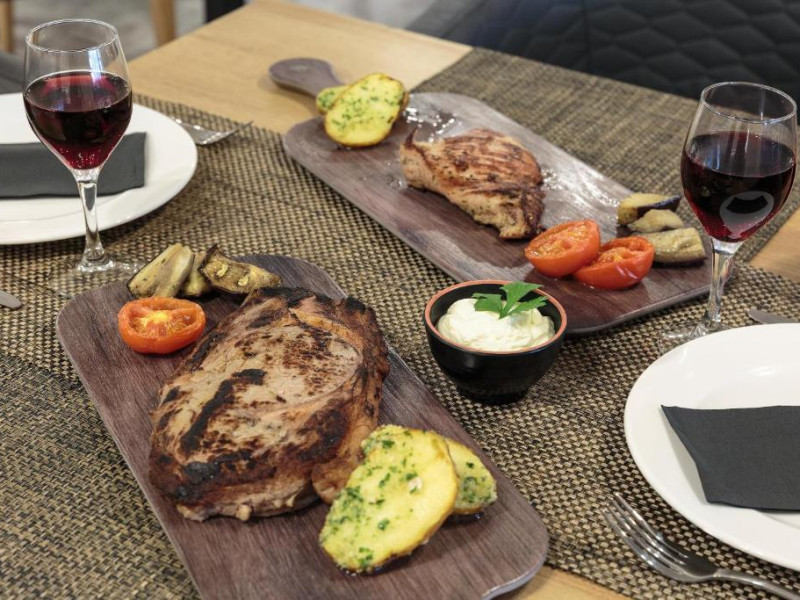Restaurantul tip bufet, cu bucătărie deschisă serveste preparate nationale si internationale. Hotelul are și un snack bar, deschis in perioada iunie - septembrie.