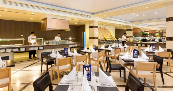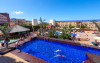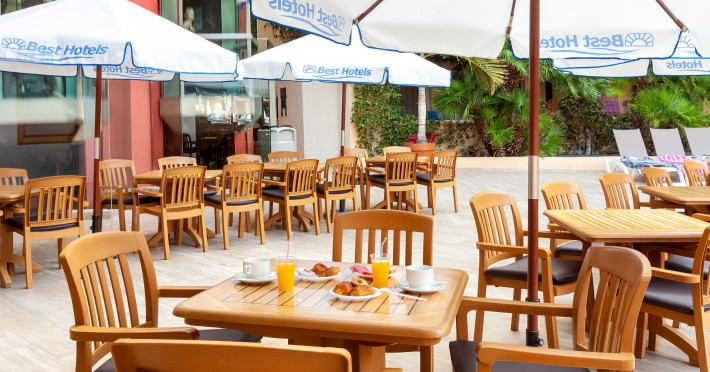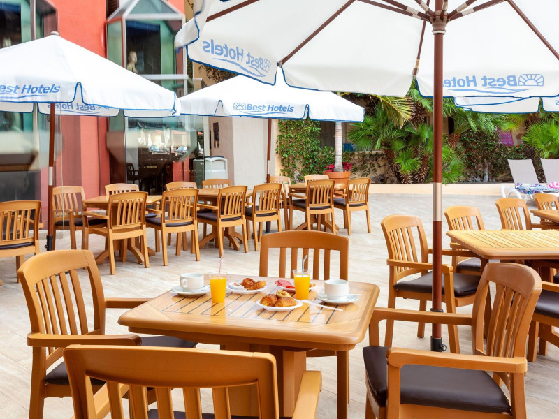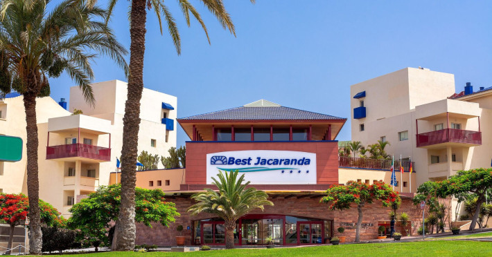 About 450 m from a beach is located the hotel Hotel Best Jacaranda. A supermarket is around 100 m away. The hotel has a 24h reception, Wi-Fi, parking spaces as well as a TV lounge with satellite TV. In the outdoor area you will find a garden as well as a heated pool (open all year), where sun loungers and sun umbrellas are available for free. There is also a children's pool. Furthermore, outside you can find a sun terrace. For your entertainment, the hotel offers a disco. You can store your luggage in the hotel's storage room. There is also a laundry service. If necessary, you can contact the medical centre (for a fee). Guests at the accommodation can get a wake-up call from the hotel personnel. Due to its barrier-free facilities , such as barrier-free entrances, the hotel is also suitable for wheelchair users. Catering Breakfast is offered from the buffet. Lunch and dinner are also served from the buffet. Your physical well-being is catered for by a buffet restaurant (gluten-free dishes). Distances