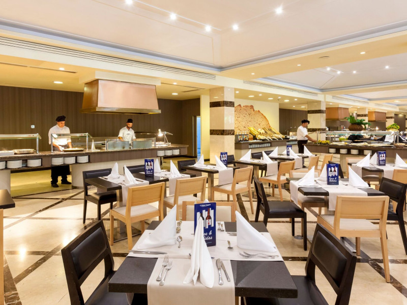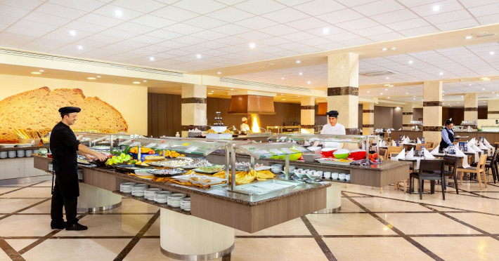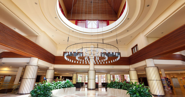 About 450 m from a beach is located the hotel Hotel Best Jacaranda. A supermarket is around 100 m away. The hotel has a 24h reception, Wi-Fi, parking spaces as well as a TV lounge with satellite TV. In the outdoor area you will find a garden as well as a heated pool (open all year), where sun loungers and sun umbrellas are available for free. There is also a children's pool. Furthermore, outside you can find a sun terrace. For your entertainment, the hotel offers a disco. You can store your luggage in the hotel's storage room. There is also a laundry service. If necessary, you can contact the medical centre (for a fee). Guests at the accommodation can get a wake-up call from the hotel personnel. Due to its barrier-free facilities , such as barrier-free entrances, the hotel is also suitable for wheelchair users. Catering Breakfast is offered from the buffet. Lunch and dinner are also served from the buffet. Your physical well-being is catered for by a buffet restaurant (gluten-free dishes). Distances- Airport: approximately at 25 km