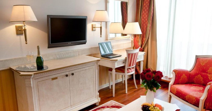 Hotelul Beyfin este decorat cu mobilier de design italian, podea cu granit și candelabre din sticlă Swarovski, realizate la comandă.