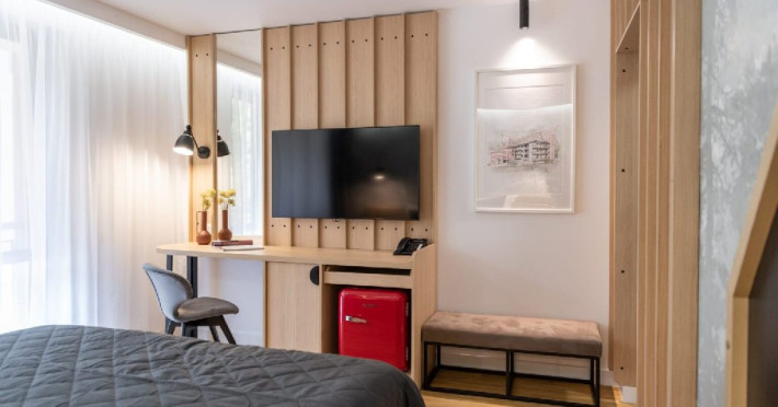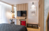 Toate camerele sunt decorate cu mobilier clasic din lemn, includ o baie privata cu articole de toaleta, uscator de par si o zona de relaxare cu TV cu ecran plat si un minibar.