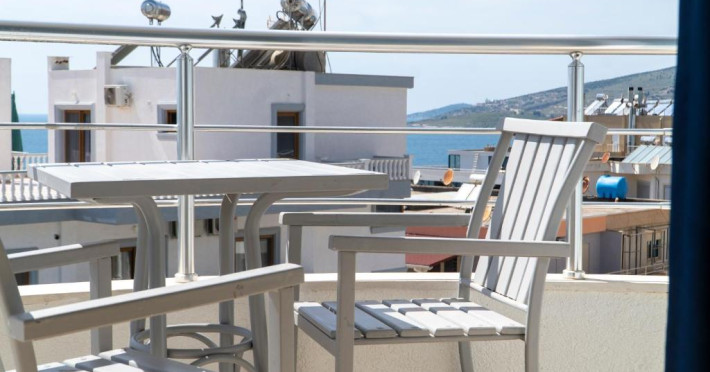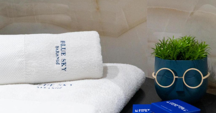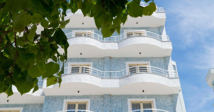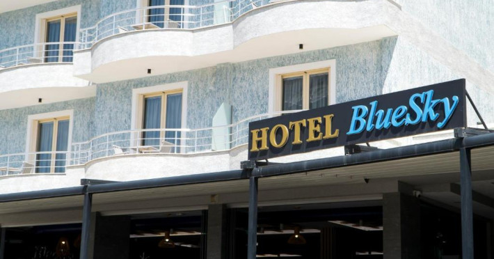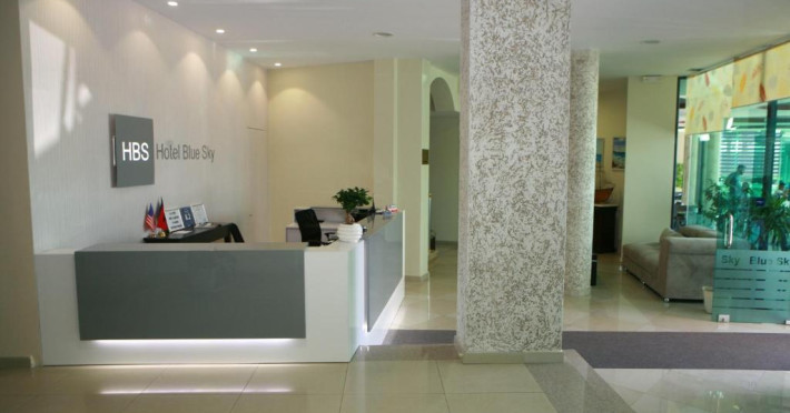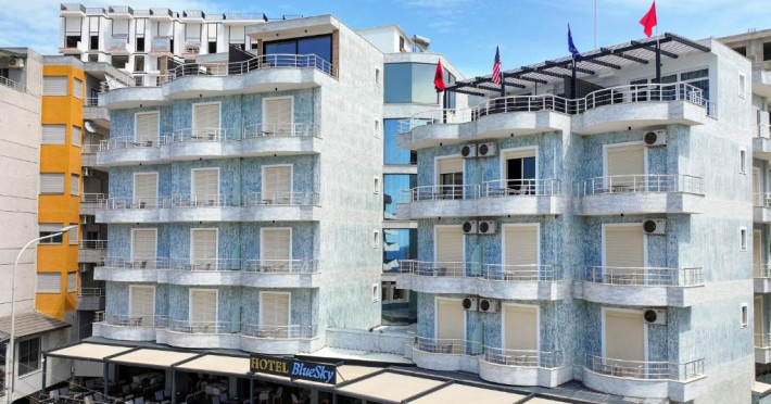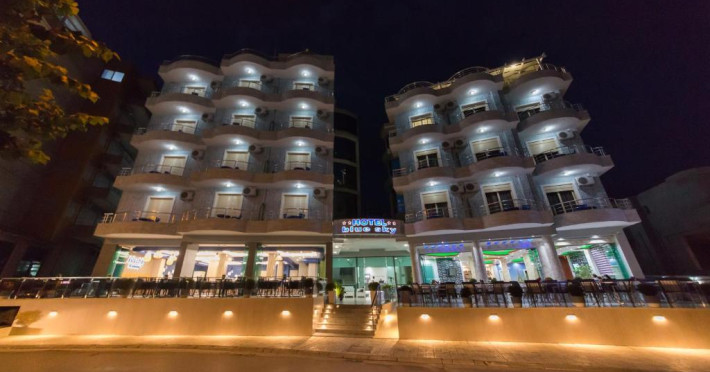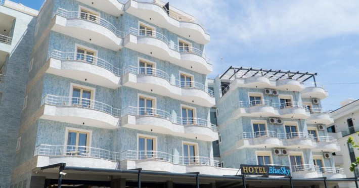 Hotelul Blue Sky este situat la 2 km de centrul orașului Sarandë. Toate camerele oferă balcoane cu vedere la Marea Ionică și la Insula Corfu sau la munții din jur.