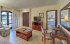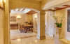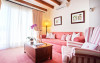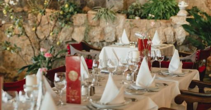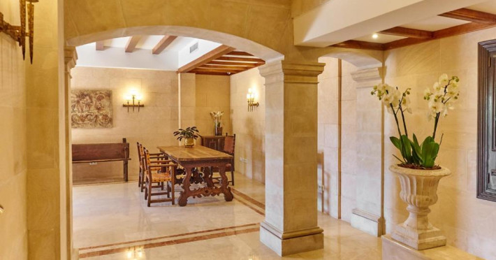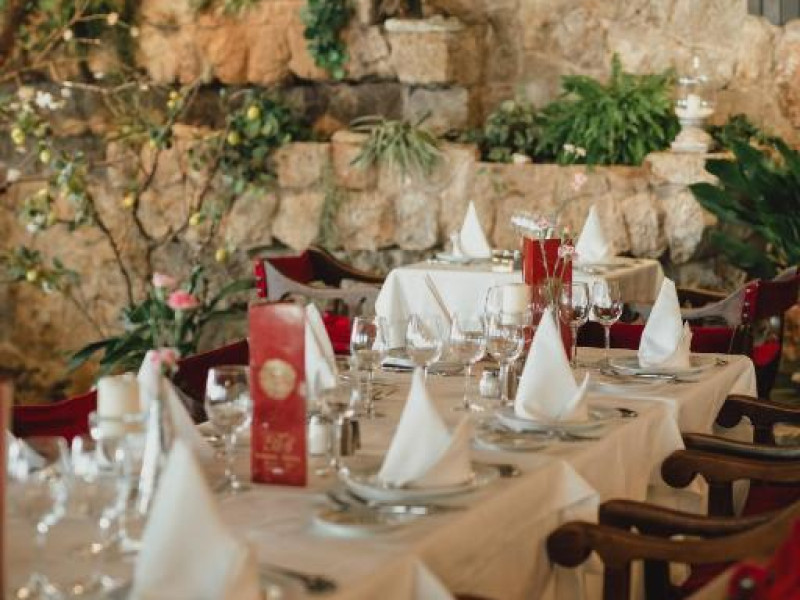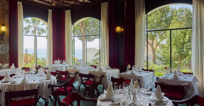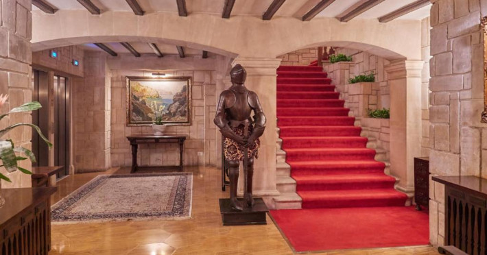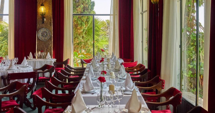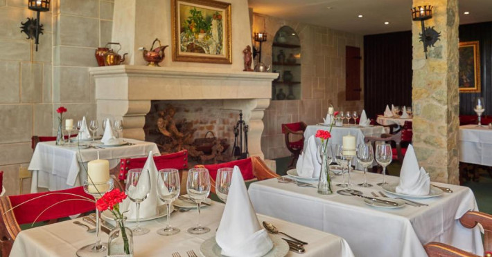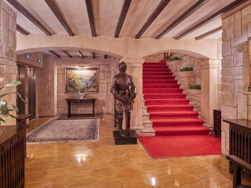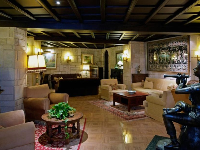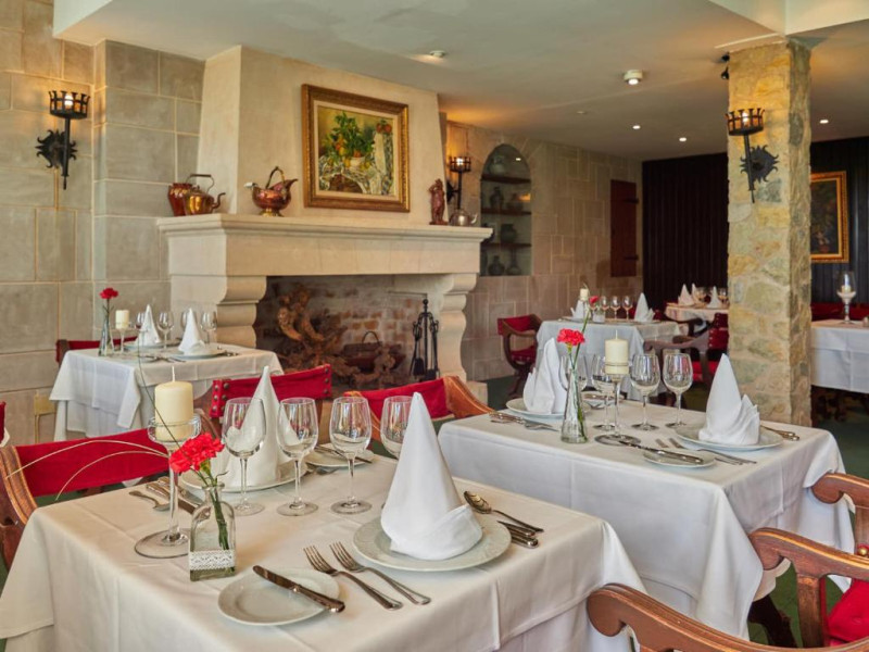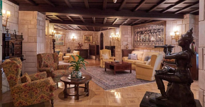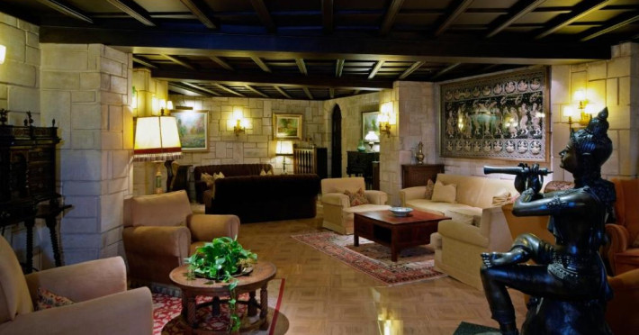 In interior, decorul cu influente arabe, mobilierul de epocă si operele de artă pretioase se combină pentru a oferi senzatia unui castel medieval. Această atmosferă unică este completată de ambianta informală de familie.