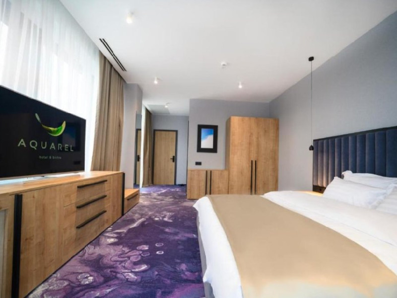 Aflat in Zalau, la 36 km de statiunea balneara Baile Boghis, Hotelul Boutique Aquarel asigura cazare cu un lounge comun, un restaurant, un bar si parcare privata gratuita. Printre facilitatile oferite se numara receptie cu program non-stop, room service si Wi-Fi gratuit in intreaga proprietate. Hotelul pune la dispozitie camere de familie.Toate camerele hotelului sunt prevazute cu aer conditionat, zona de relaxare, TV cu ecran plat cu canale prin cablu, seif si baie privata cu dus, halate de baie si papuci. Camerele de la Hotel Boutique Aquarel au lenjerie de pat si prosoape.