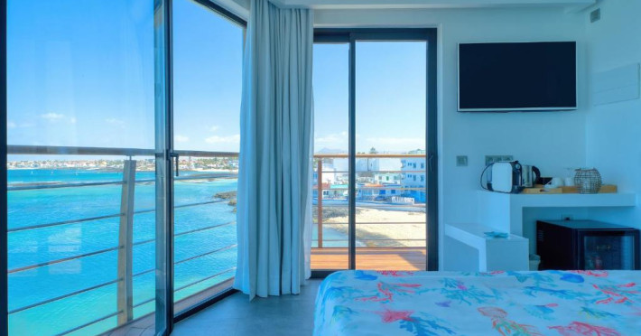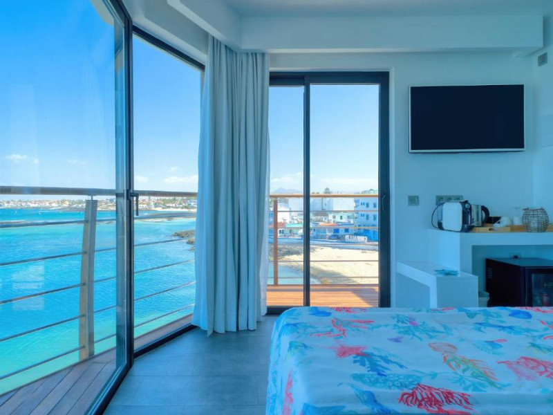 Locație pe malul mării: Hotelul Boutique La Marquesina din Corralejo oferă acces direct la malul mării, cu vederi uimitoare la mare. Oaspeții se pot relaxa pe terasa la soare sau se pot inota in piscina de pe acoperiș.