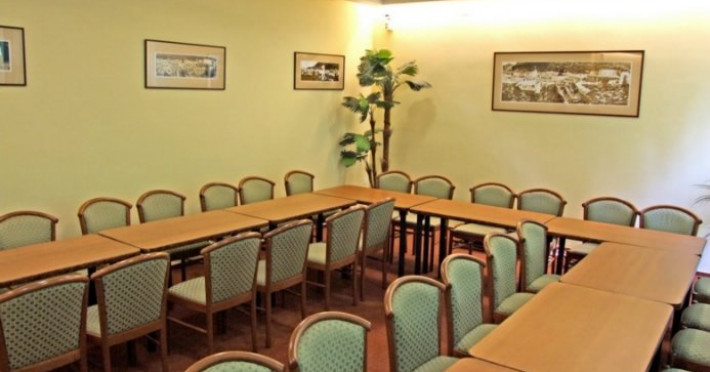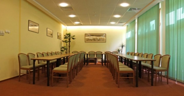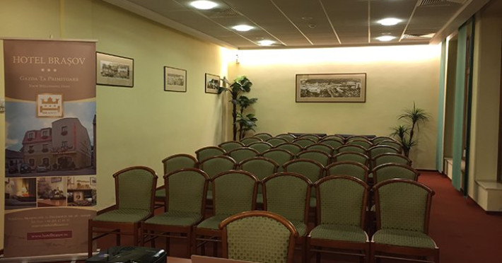 Sala de conferinte, special amenajata pt trainguri, conferinte sau simpoziane, are o capacitate de pana la 40 de locuri, dotata cu aer conditioanta, internet, videoproiector, ecran pt proiectie, flipchart si sistem de sonorizare.
