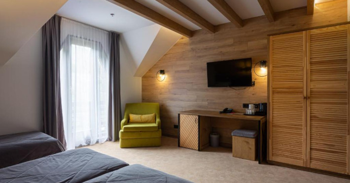 Inconjurat de 53 km de partii de schi, acest hotel de 3 stele din inima statiunii Bukovel oferă facilităti de spa moderne, diverse activităti de agrement si preparate din bucătăria internatională. Accesul la internet Wi-Fi este gratuit.