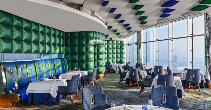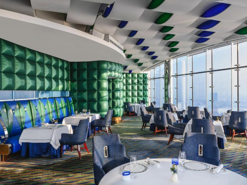 Barul Sky View este suspendat la 200 de metri deasupra nivelului mării și servește ceai și cocktailuri după-amiaza. Al Muntaha este restaurantul select original de la Burj Al Arab, care servește mancăruri din bucătăria europeană modernă.