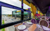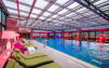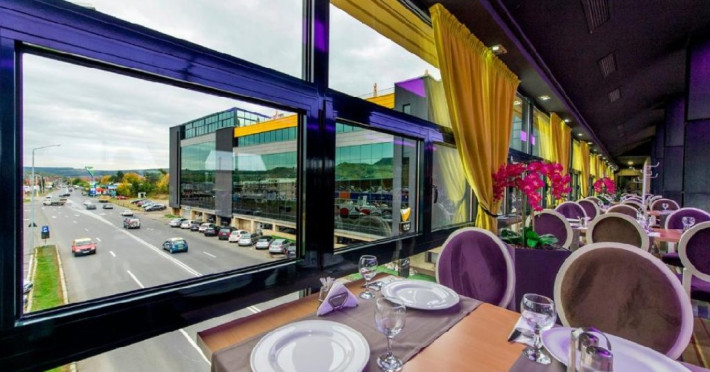 Restaurantele separate sunt specializate in bucatarie autentica romaneasca, maghiara si italiana. Barul de pe acoperis ofera vedere panoramica la padurea din jur. Oaspetii beneficiaza de o receptie deschisa non-stop.