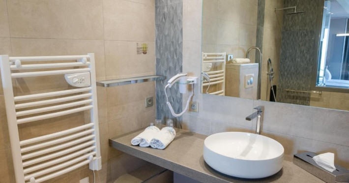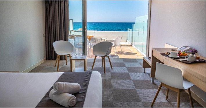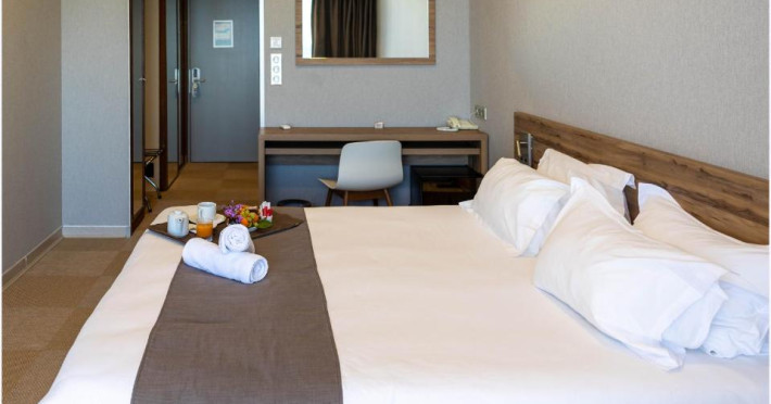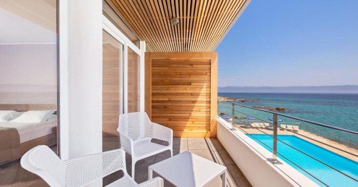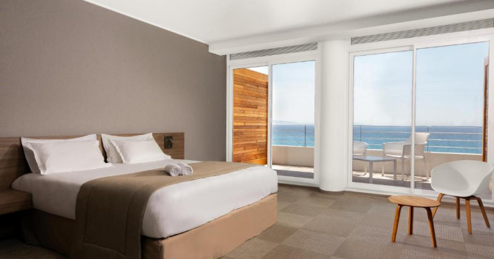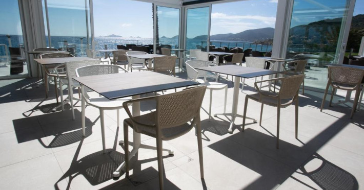 Camerele luminoase sunt decorate in nuanțe marine și dispun de balcoane private, majoritatea cu vedere spre mare. Oaspeții se pot bucura de piscina in aer liber și de restaurantul cu specific mediteranean care servește specialități corsicane autentice.