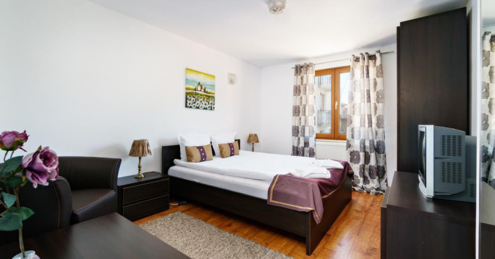 Facilități cameră: minibar, seif, televizor cu canale prin cablu, fier de călcat, balcon, incălzire, baie cu duș, birou, internet Wi-fi.