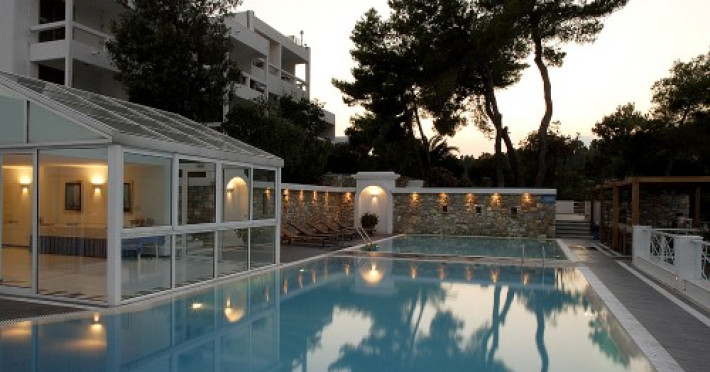 Amplasat pe o proprietate de 8 hectare, parte a unei peninsule private, cu vedere la Marea Egee si la magnificul Golf Kanapitsa, hotelul ocupa ceea ce este, fara indoiala, una dintre cele mai bune pozitii de pe insula. Construit pe un promontoriu inalt, intre doua golfuri largi, unitatea ofera acces la doua dintre cele mai frumoase plaje din Skiathos, la care ajungeti dupa o scurta plimbare prin gradini luxuriante si o mica padure de pini. Astfel, traversand gradinile hotelului, veti ajunge la piscina cu apa de mare si la zona de plaja.Datorita dinamicitatii domeniului disponibilitatea ofertelor se modifica de la un moment la altul. De aceea ofertele sunt valabile in limita locurilor disponibile. Agentia nu este responsabila pentru eventualele neconcordante care pot aparea intre informatiile privind tarifele si alte detalii din site si informatiile primite in agentie. In aceste cazuri vor avea prioritate, intotdeauna, informatiile primite in agentie.