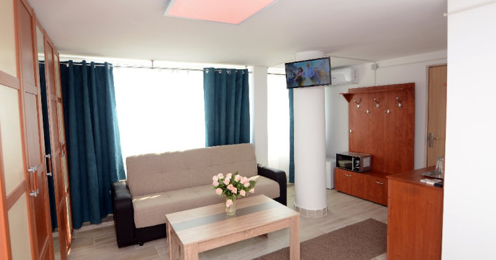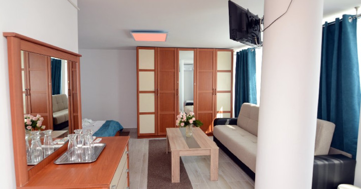 3 camere family (1 camera standard matrimoniala, 1 camera copil, hol, 1 minibucatarie, baie) cu vedere la mare