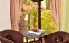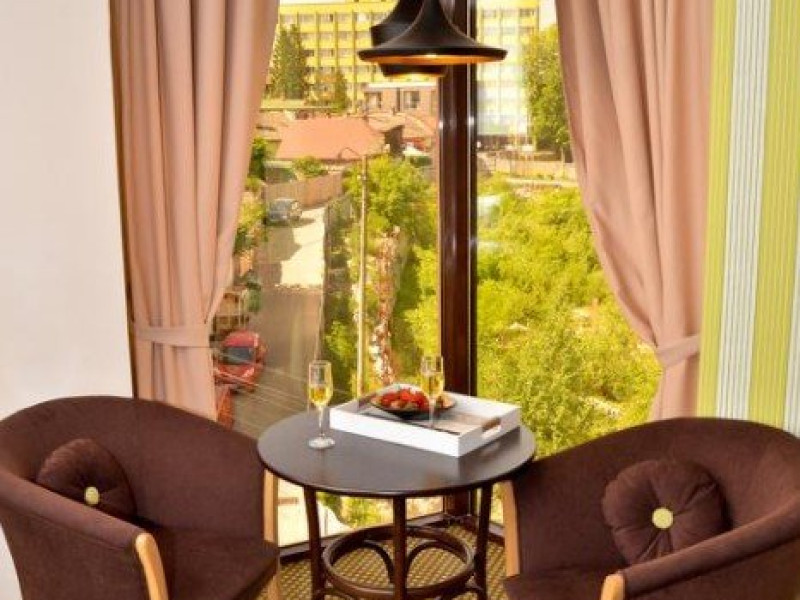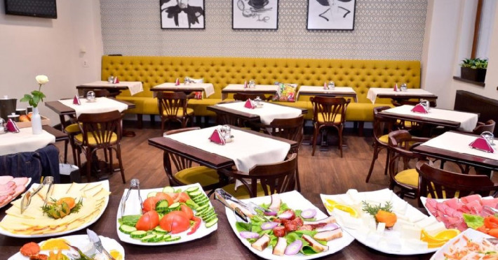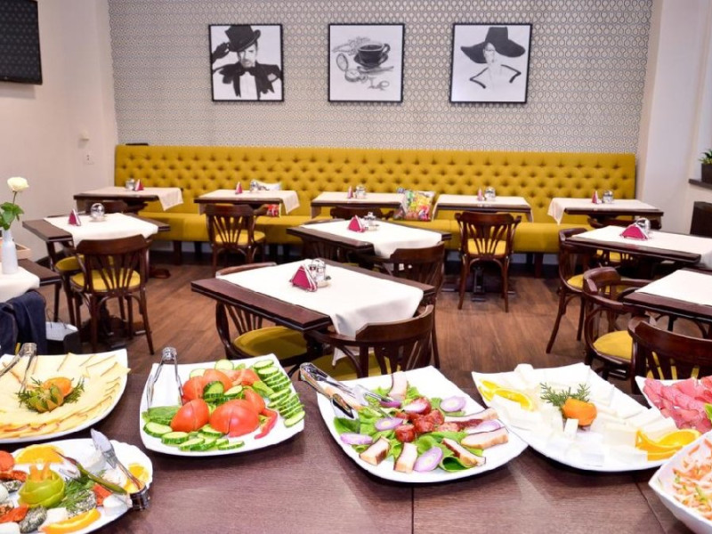 Este disponibil un bufet bogat de mic dejun, cu fructe proaspete, suc, cafea si ceai, croasante, mezeluri si branzeturi, oua, iaurt si mancaruri traditionale romanesti, cum ar fi zacusca si salata de vinete.