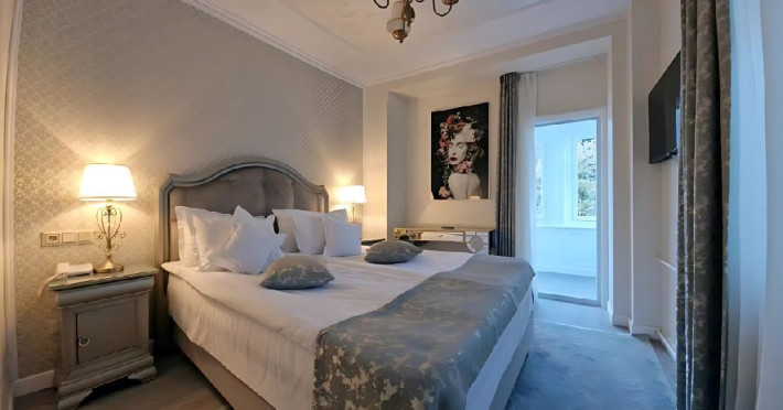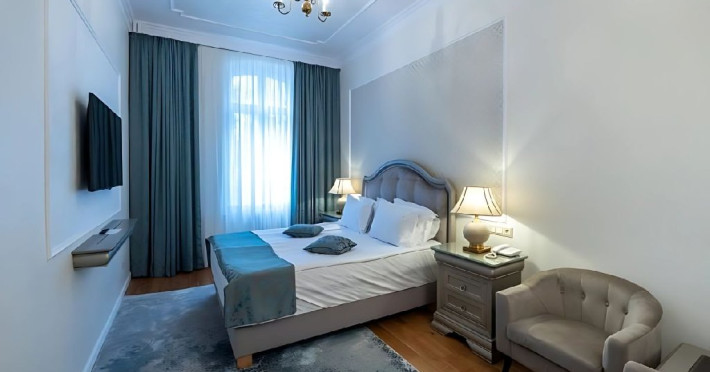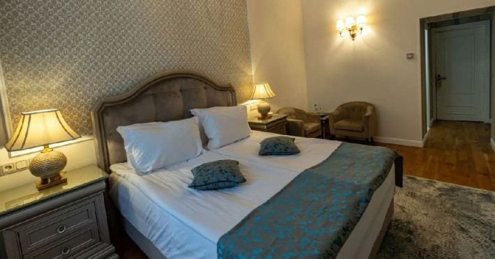 Dubla standard king plus- dotate cu un pat matrimonial si o canapea fixa sau doua fotolii. Suprafata variaza in jurul a 25 mp