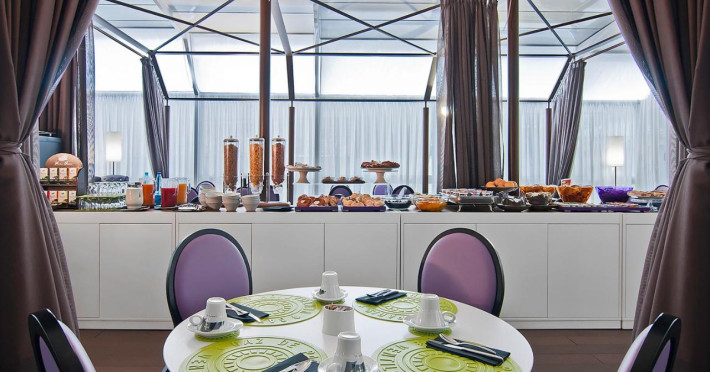 Zilnic este servit un mic dejun cu produse dulci, iar restaurantul este specializat in bucătăria traditională italiană.
