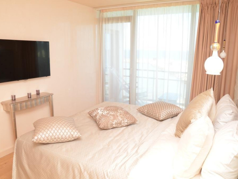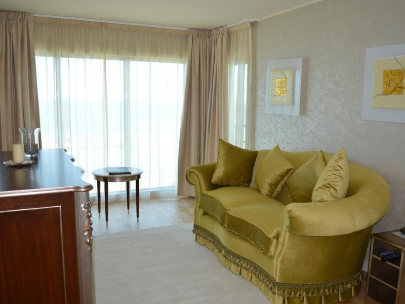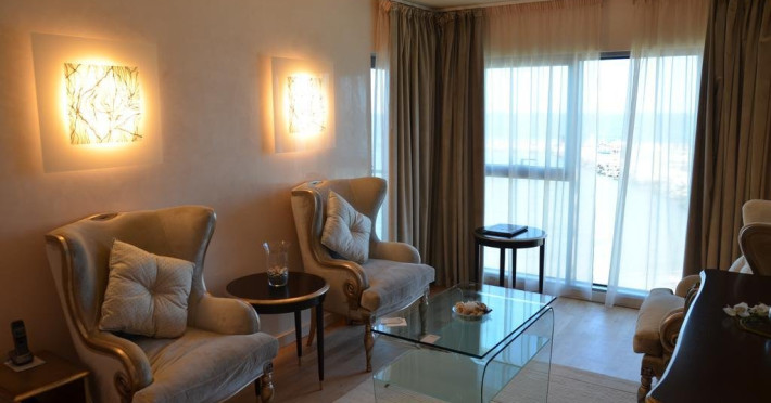 Suita este comupsa din dormitor cu pat matrimonial si zona de zi cu canapea extensibila sau 2 fotolii. Suita are vedere frontala la mare.