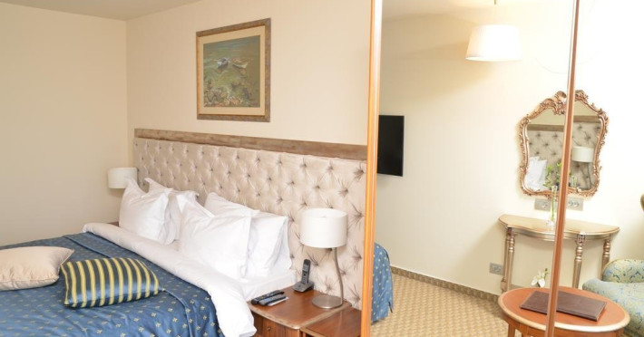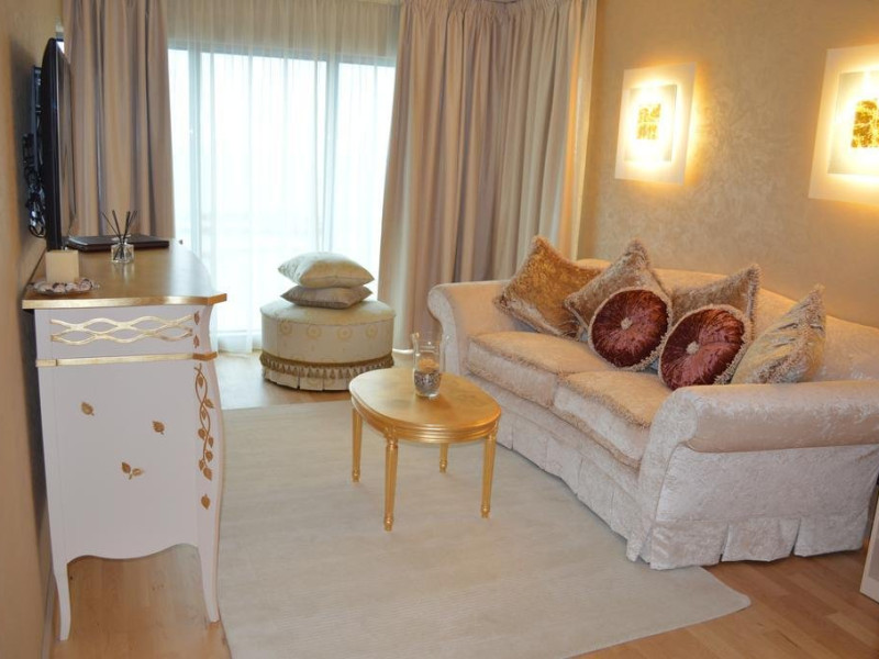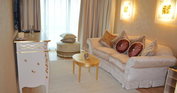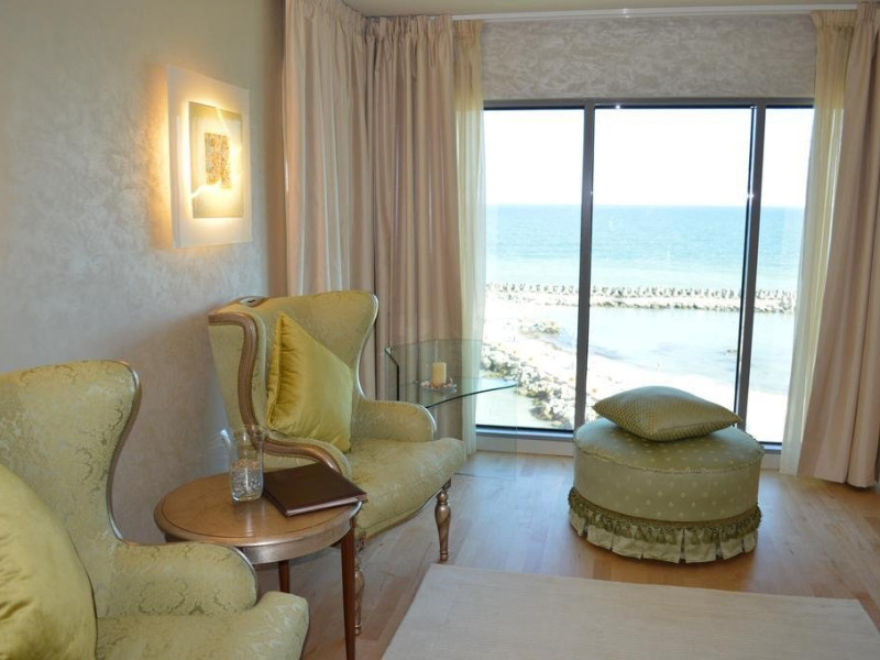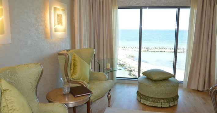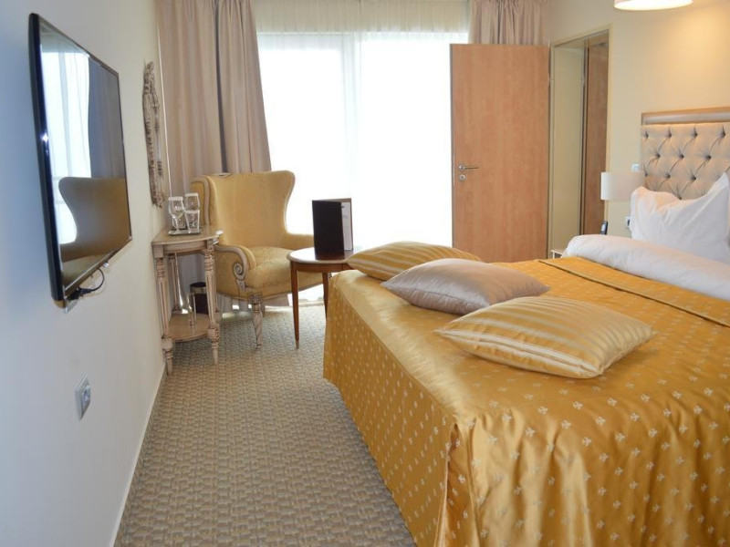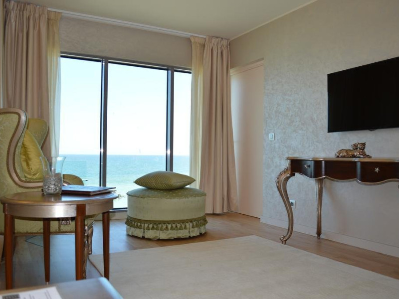 Apartamente junior: - Junior suite este un apartament format dintr-un living cu fotolii, un dormitor cu pat matrimonial si hol; beneficiaza de vedere frontala la mare, balcon.